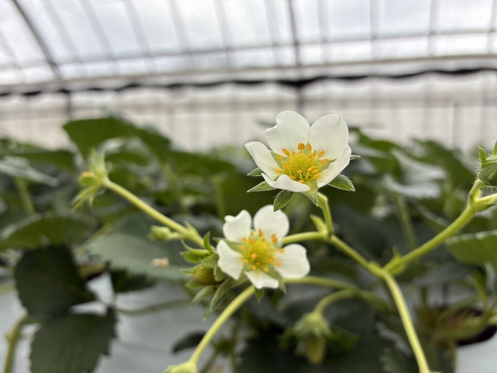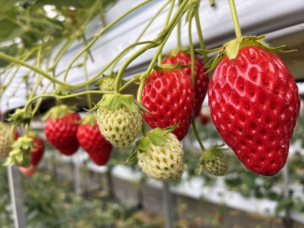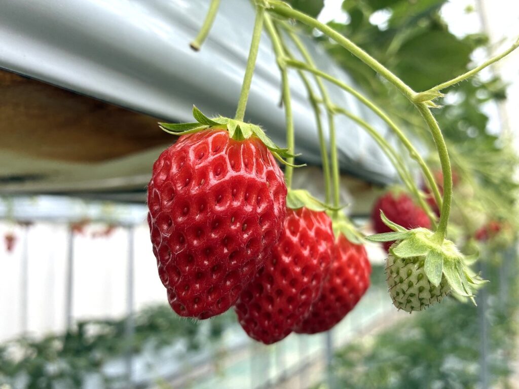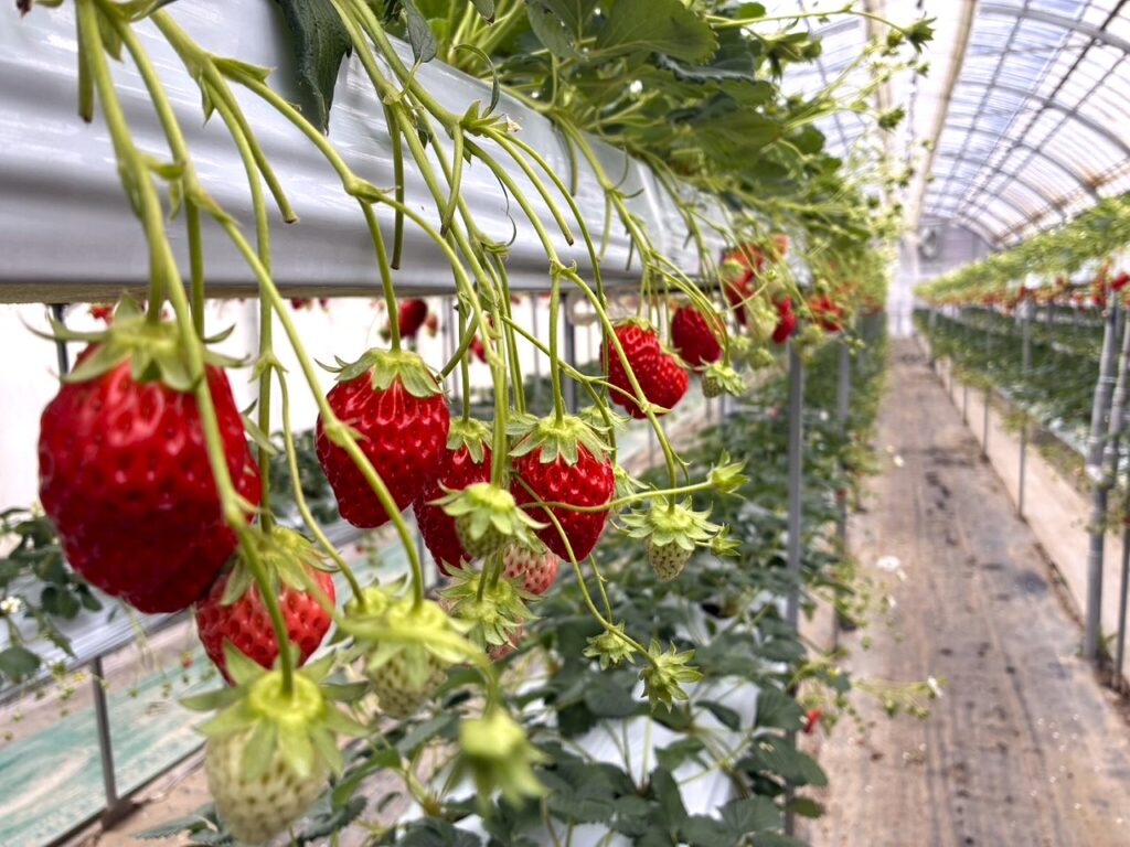 ハウスに入りますと、、、そこはまさに「苺のカーテン」