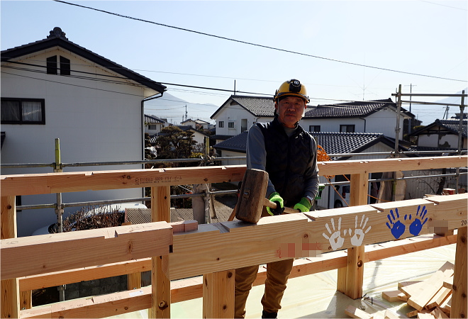 ご家族の想いを描いた祈念梁もしっかりとはめ込まれましたね♪