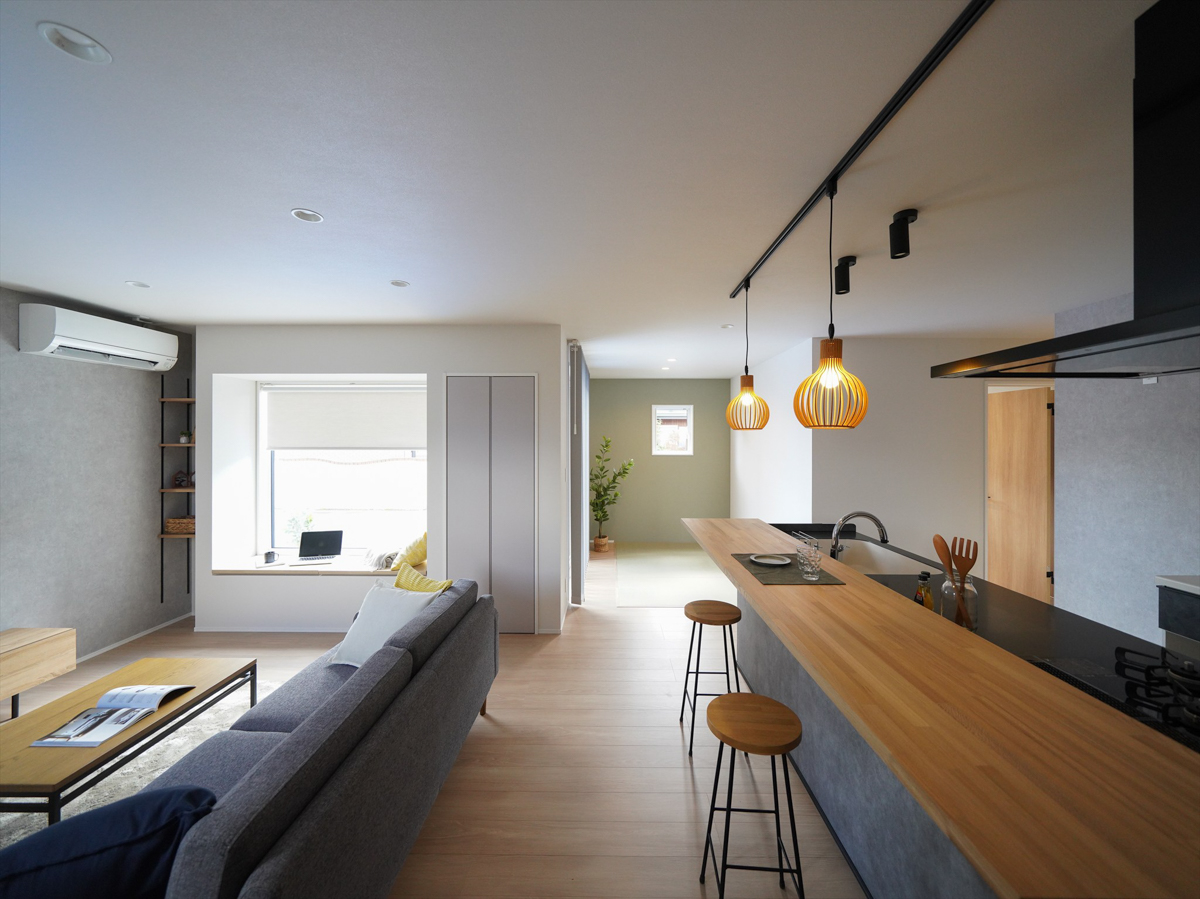 キッチンに立ちながらLDK全体に目が届く設計で、常に家族の存在を感じながら、
