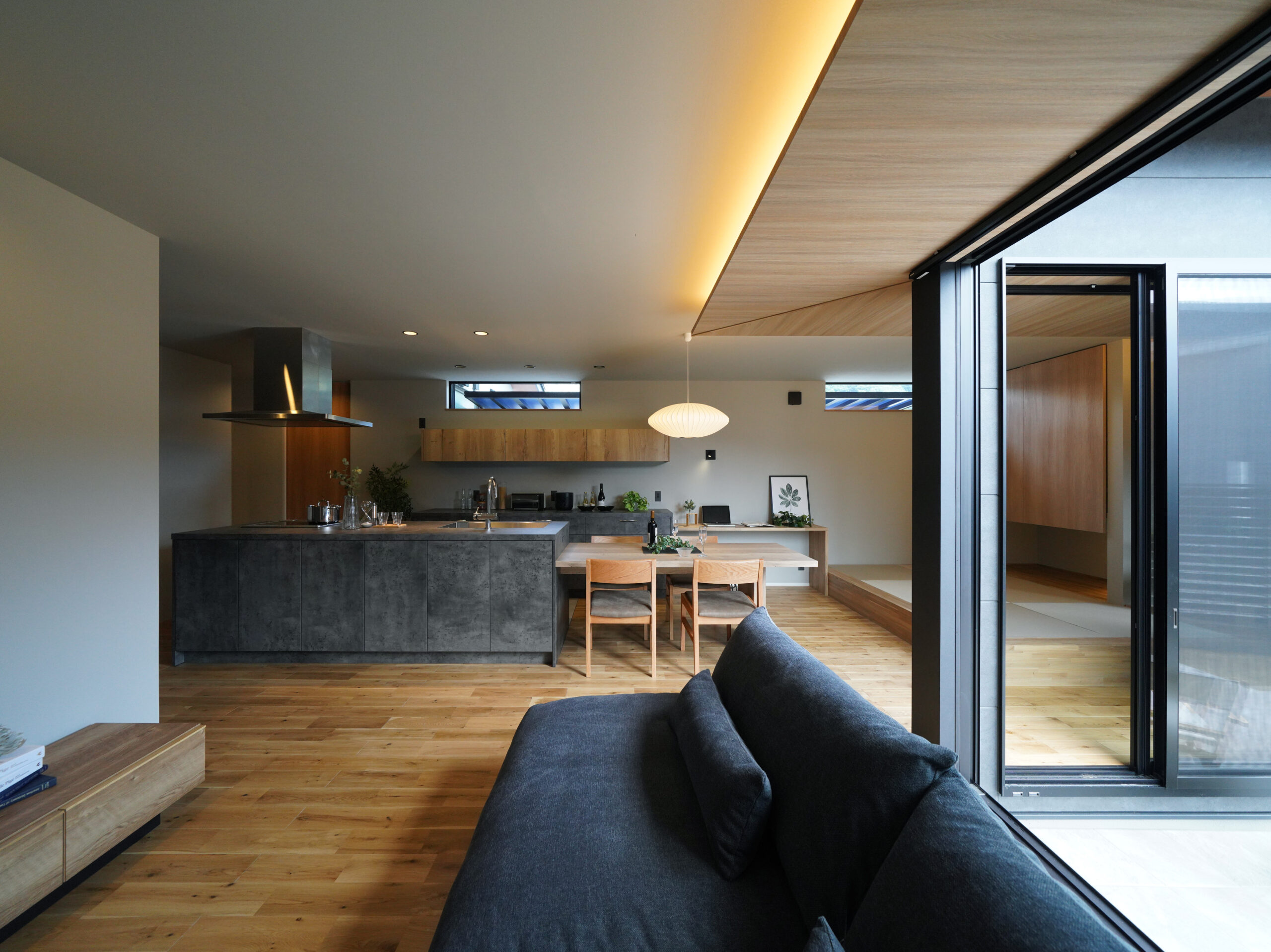視界を遮らない工夫を詰め込んだ、家族がのびのび過ごせる開放的なLDK。