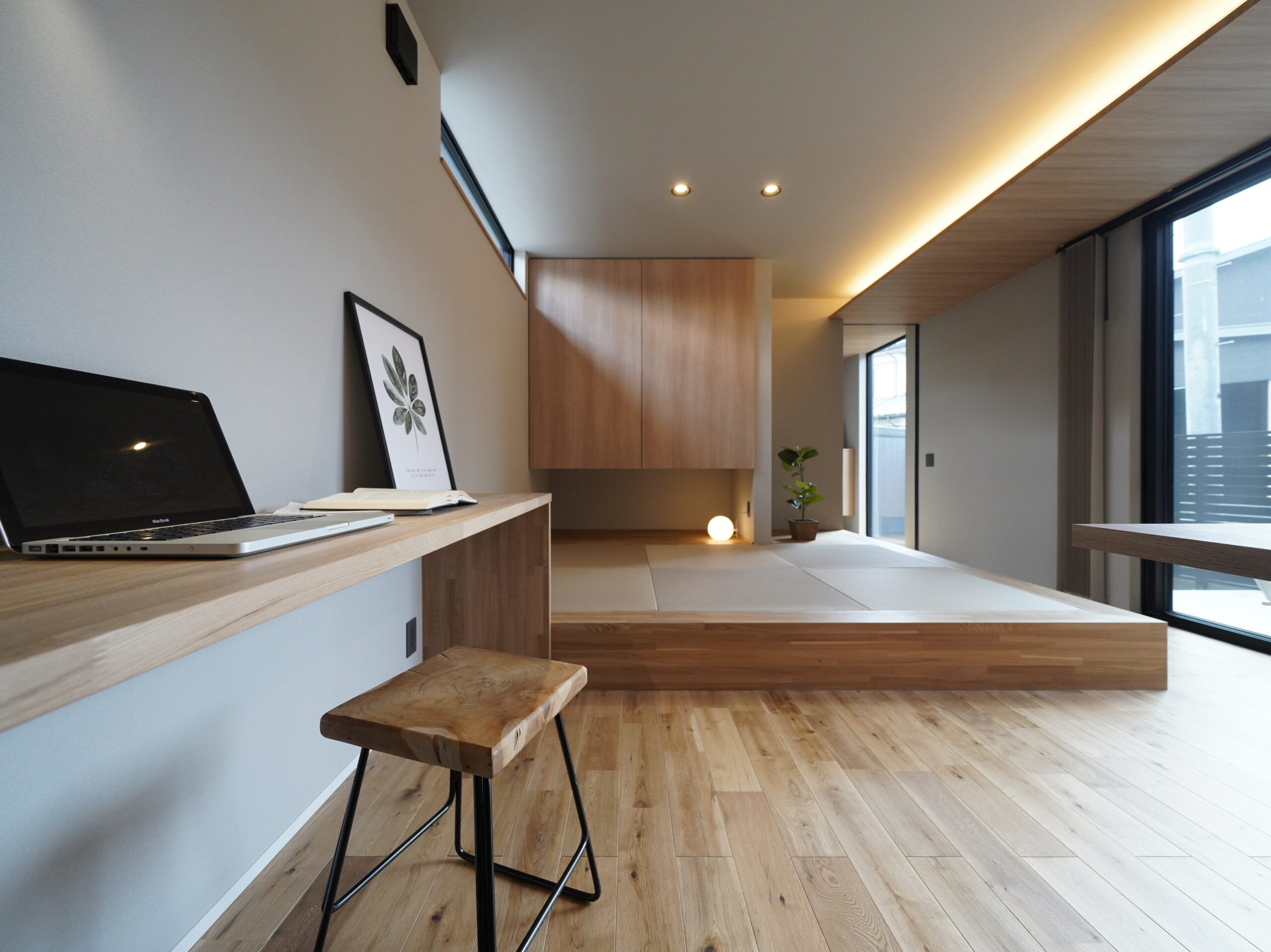 LDKの一角に設けた、ワークスペースと小上がり畳。